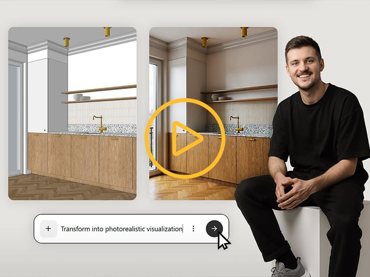 Ożyw swoje wizualizacje w kilka sekund! Dzięki modelom wideo AI przekształcisz statyczny kadr w krótką animację lub przelot kamery. Zachowujesz realizm światła, materiałów i ruchu: idealne do prezentacji dla klienta.